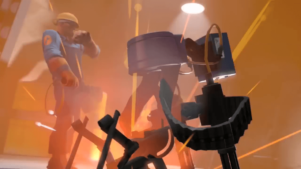 I could easily imagine a new Team Fortress 2 player being confused by the Spy’s Electro-Sapper. From a first impression, it doesn’t seem to do anything. Its utility is clearly shown here – it destroys enemy Engineer’s buildings. I should dock points for the fact that you can’t actually slide the Sapper across the ground like shown here, but you look me in the eye and tell me that Spy simply walking up and plopping it on Engineer’s sentry would have been half as badass.