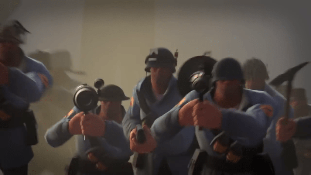 Actually, let’s talk about the genius of having two different Spies in this short, one as a protagonist and one as an antagonist (I’ll let you decide for yourself which is which). In the Team Fortress universe, it’s a normal thing to see two or three or even a dozen identical mercenaries on the battlefield.