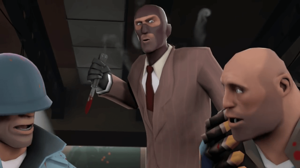 The BLU Spy states that even though the briefcase is safe, if the RED Spy is still alive, then the whole team is in danger. Scout, being the cocky little frontbutt that he is, casually says that it’s no problem, even playing with the knife lodged in the dead Sniper’s back. Hey, why was Scout so eager to play with that knife in the first place?