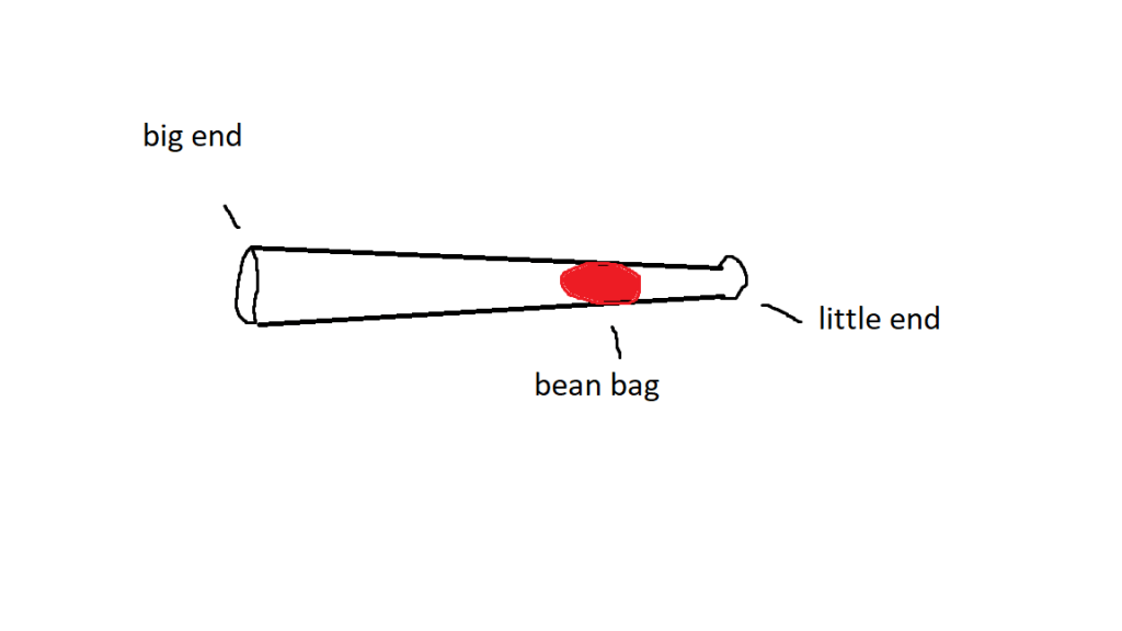 I’m sorry you asked. Each team is given a “horn” about three feet in length. One end is smaller than the other to facilitate blowing into. Nestled snugly within the horn is a weighted bean bag.